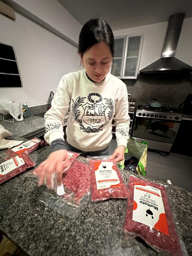 En ese camino, Zulma ya había escuchado sobre alimentación BARF, y decidió ir más allá: llevó un curso de nutrición de mascotas, donde entendió con claridad algo que nos hizo clic: gran parte de la comida ultra procesada no se parece en nada a lo que un perro comería de forma natural. Ahí empezamos a hacer preguntas distintas. ¿Qué pasaría si volvíamos a lo esencial? ¿Si la comida fuera fresca, real, sin “misterios” en la etiqueta?